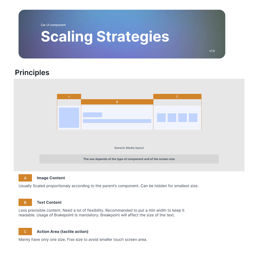 Rédaction de la documentation des composants, bonnes pratiques d’utilisation et spécifications basées sur les guidelines Android Automotive.